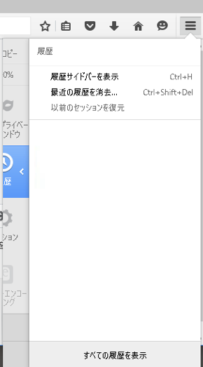 ツールバーの「履歴」から「履歴の消去…」をクリックします。