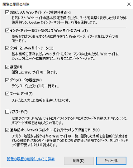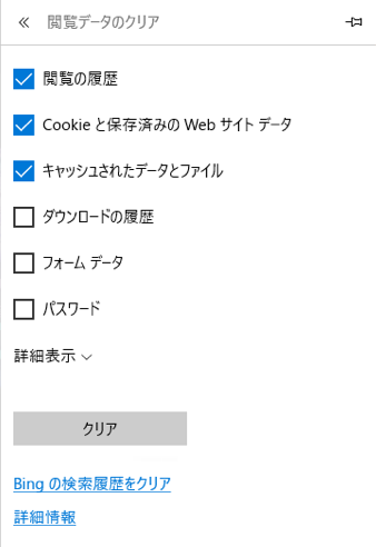必要な項目にチェックを入れて「クリア」をクリックします。