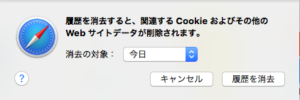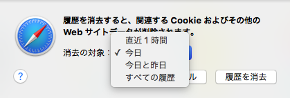 「消去の対象」を選択して、「履歴を消去」をクリックします。