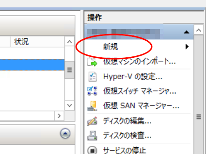 「Hyper-Vマネージャー」の「新規」をクリックします。