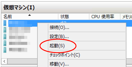 作成された仮想マシンを右クリックし、「起動」をクリックします。