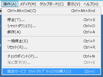 起動したら仮想マシンを右クリックし、「接続」をクリックして「操作」から「統合サービス セットアップ ディスクの挿入」を選択しインストールします。