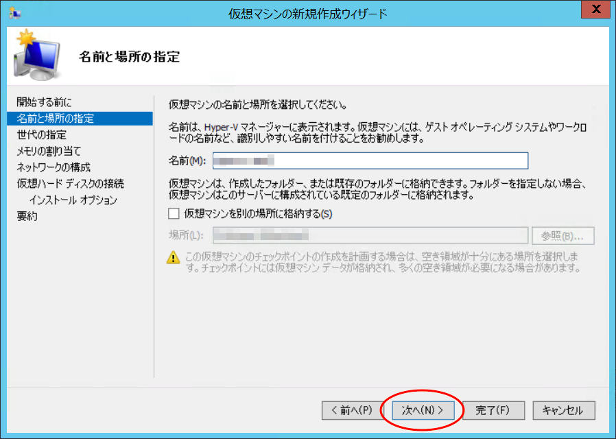 仮想マシンの名前を入力して「次へ」をクリックします。