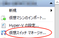 「Hyper-Vマネージャー」の「仮想スイッチマネージャー」をクリックします。