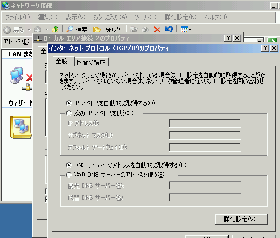 Windows 2003 Server にVHD変換前のIPアドレスを設定し、ライセンス認証をインターネット経由で行います。