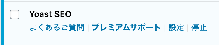 エラーをチェックしたところ、今回は「 Yoast SEO 」が原因でした。古いバージョンが入っているサイト、新しいバージョンが入っているサイトは問題なかったのですが、特定のバージョンが入っているとエラーしてツールバーが表示されなくなっていました。